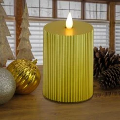 National Tree Company 5×9 HGTV Home Collection Flameless Georgetown Pillar Candle, Gold