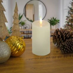 National Tree Company 5×9 HGTV Home Collection Flameless Heritage Pillar Candle, Ivory