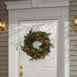 National Tree Company 24″ Rural Homestead Wreath With LED Lights