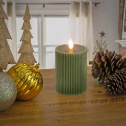 National Tree Company 5×9 HGTV Home Collection Flameless Georgetown Pillar Candle, Dk Green
