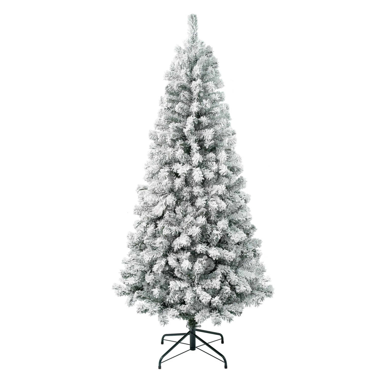 The Acacia tree offers a slimmer profile than trees of similar height making it a great choice for display in corners or in areas where floor space is limited. This tree features flocked branches giving the appearance of freshly fallen snow.ย