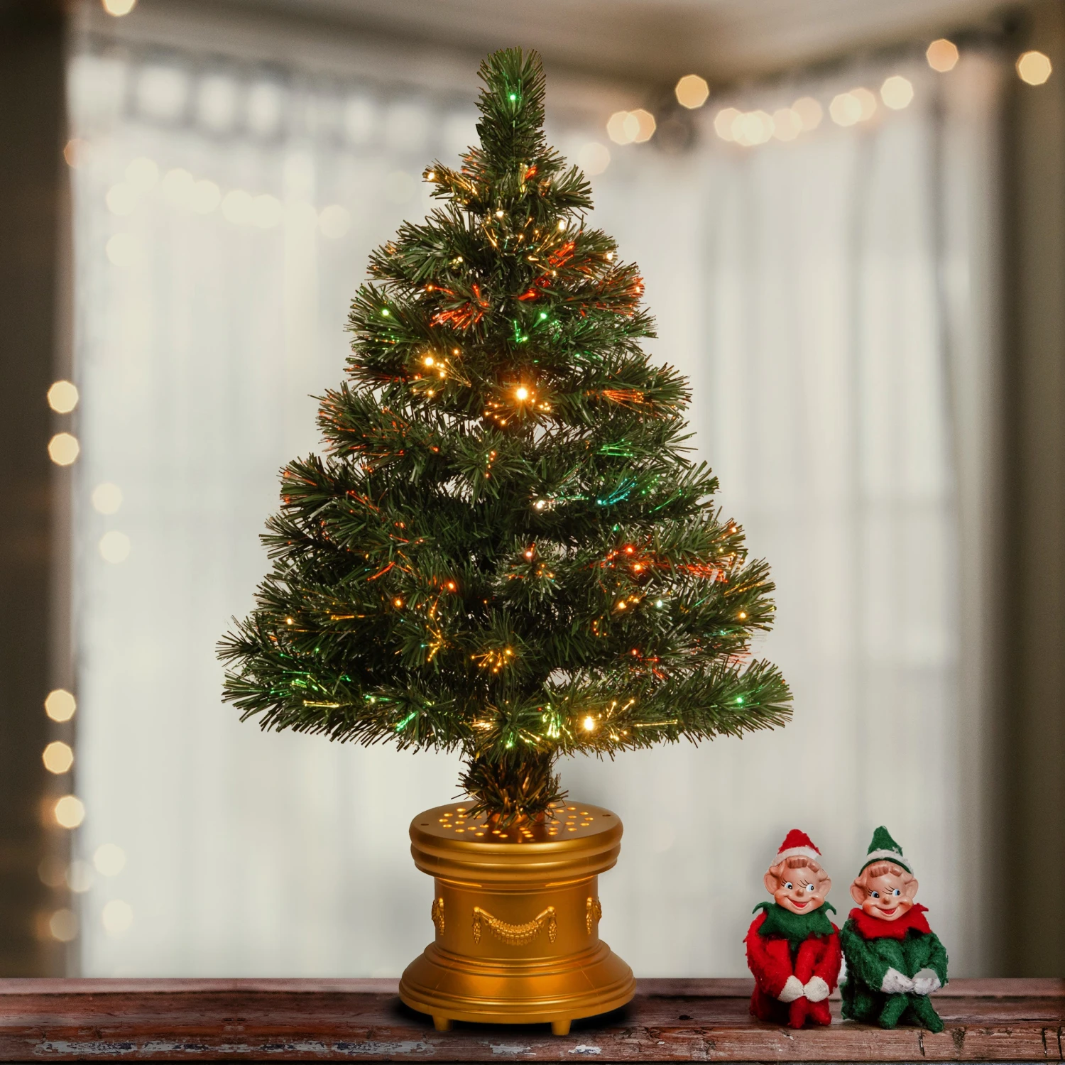 - Features multicolor fiber optic lights that remain lit even when a bulb goes out. The lights are strung on the tree before packaging, offering an easier, more convenient set up.