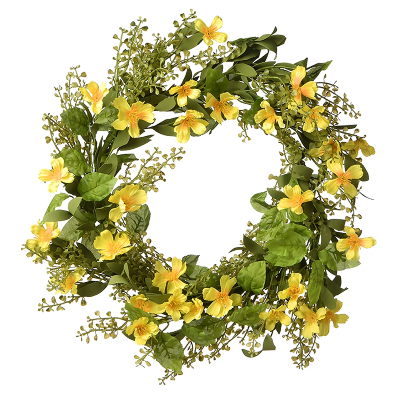Invite the natural color and feel of the spring season into your home and garden with National Tree Company’s Artificial Hanging Wreath. This spectacularly spring decoration is the perfect complement to any decorative arrangement, featuring large, yellow cosmos blooms and a swirl of flowing, green stems. Crafted with sturdy, high quality materials, this artificial plant decoration is designed to capture the warmth and colors of the spring season year after year. Suitable as an indoor or covered outdoor decoration, hang this artificial spring decoration on a door, window, or mantle to add a natural accent to any area of the house. At National Tree Company, we believe that special seasonal memories do not have to be far and few between. This spring, let our decorations transform your home while you focus on creating more of those magical moments. Includes one Artificial Hanging Wreath that measures 22 inches in diameter and is designed with a woven, vine stem base.