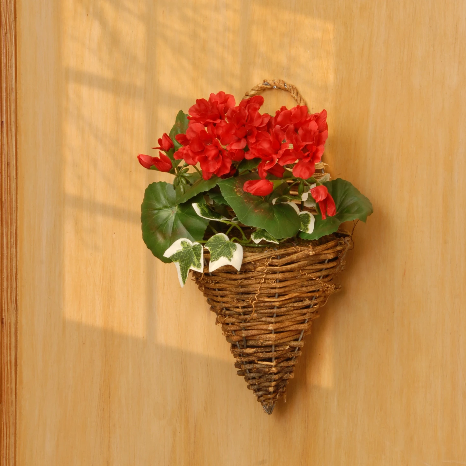 Invite the natural color and feel of the spring season into your home and garden with National Tree Company’s Artificial Wall Cone Basket. This spectacularly spring decoration is the perfect complement to any decorative arrangement, featuring large blooms of red flowers and a swirl of leafy greens. Crafted with sturdy, high quality materials, this artificial plant decoration is designed to capture the warmth and colors of the spring season year after year. Suitable as an indoor or covered outdoor decoration, hang this artificial spring basket on a door, window, or mantle to add a natural accent to any area of the house. At National Tree Company, we believe that special seasonal memories do not have to be far and few between. This spring, let our decorations transform your home while you focus on creating more of those magical moments. Includes one Artificial Wall Cone Basket that measures 11 inches in height and is designed with a woven wicker basket base.