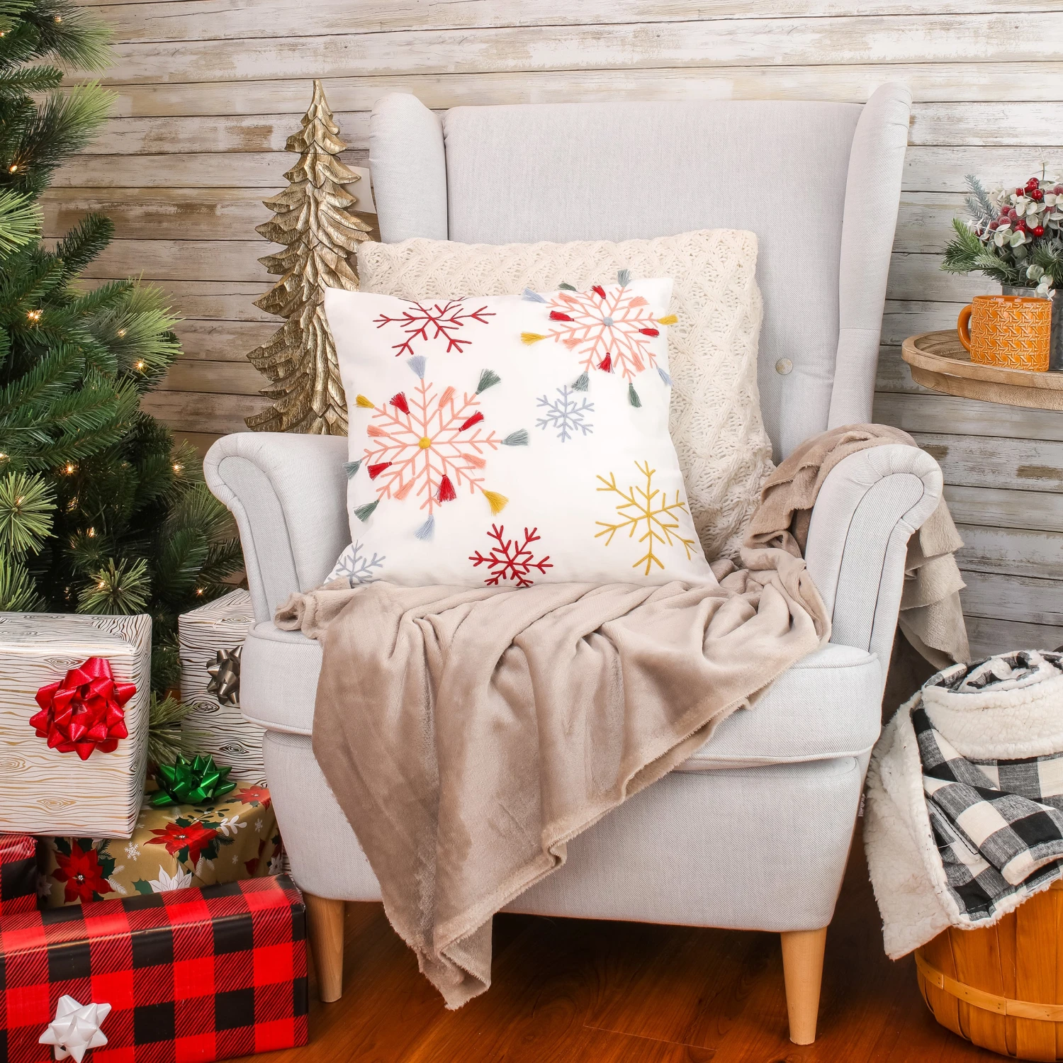 - HGTV Home Collection presents this festive beach-inspired HO HO HO pillow. This 14″x16″ pillow is tan with accents of blues and reds. Featuring seashells with Santa’s hat, this pillow combines the spirit of the beach with a festive holiday feel. Cozy up this Christmas next to this beautiful embroidered pillow.