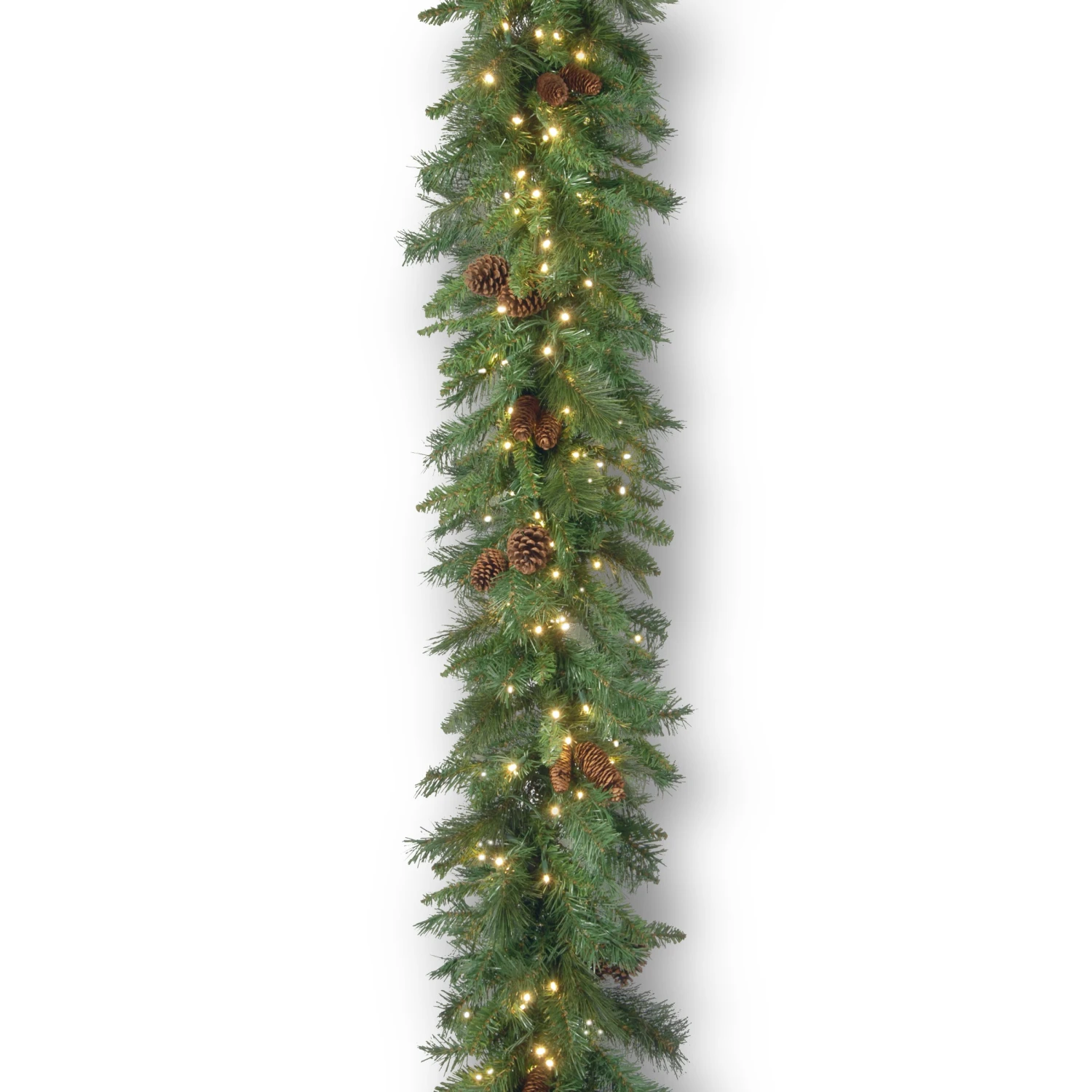 - Designed with a Garwood Spruce branch base, this pre-lit artificial Christmas garland is 9 feet long and features beautiful, natural looking branches.