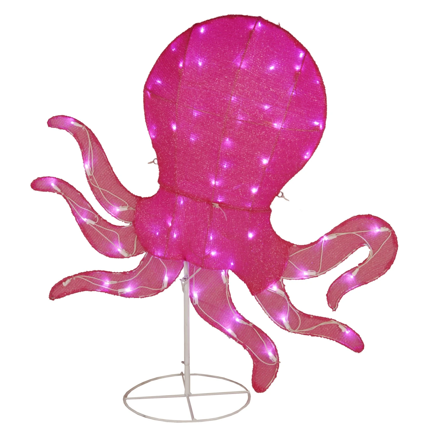 - Includes one Pre-Lit Smiling Purple Octopus Outdoor Decoration that measures 36 inches in height, 34 inches in width and 12 inches in length and features purple and white tinseled fabric.
