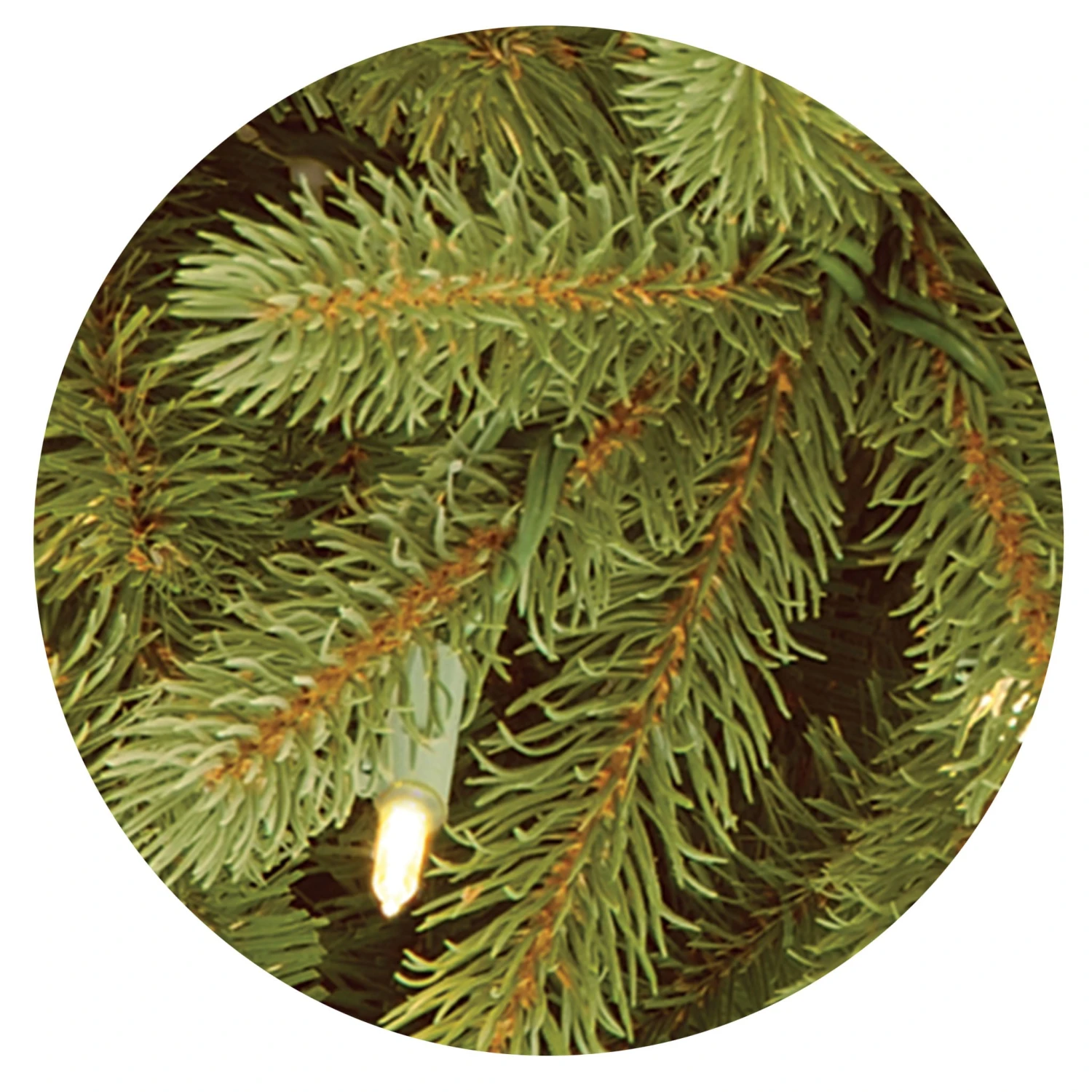 This Jersey Fraser Fir tree features FEEL-REAL® branch tip technology, creating a tree with remarkable realism. These crush-resistant branch tips are molded from real tree branches for an authentic living tree appearance. This full-bodied tree is pre-strung with 800 clear lights that remain lit even if a bulb burns out. The slim profile allows for a better fit in corners or limited space areas. Three section construction and hinged branches add to ease of assembly. Sturdy folding metal tree stand is included.