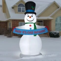National Tree Company Inflatable Snowman With Sign, LED Lights, Plug In, Christmas Collection, 8 Feet